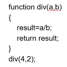 JavaScript 部分程式如下圖,其 div 函式透過 return 的功能將運算值回傳,執行 div(4,2) 結果為何?